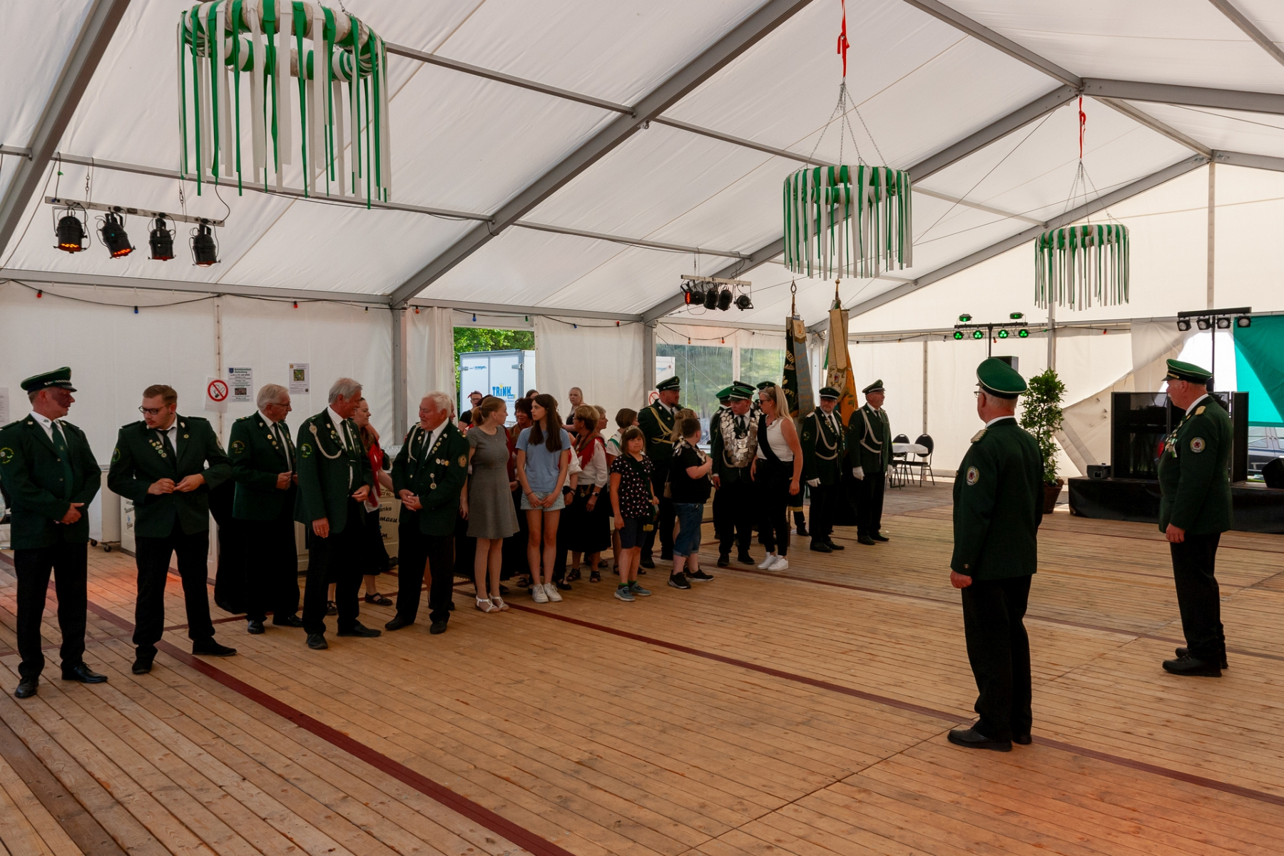 Horst Kröner begrüßte die Könige der angetretenen Vereine sowie die Präsidenten/in und Ehrenpräsidenten. Im Anschluss daran folgten der Königstanz mit allen Königinnen und Könige der Vereine. Nach dem Horrido auf die Vereine und dem Schützenfest ließ Günter Hischemöller die angetretenen Vereine zum gemütlichen Teil wegtreten.