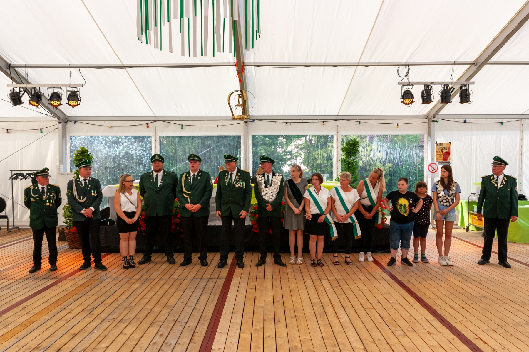 Horst Kröner begrüßte die Könige der angetretenen Vereine sowie die Präsidenten/in und Ehrenpräsidenten. Im Anschluss daran folgten der Königstanz mit allen Königinnen und Könige der Vereine. Nach dem Horrido auf die Vereine und dem Schützenfest ließ Günter Hischemöller die angetretenen Vereine zum gemütlichen Teil wegtreten.