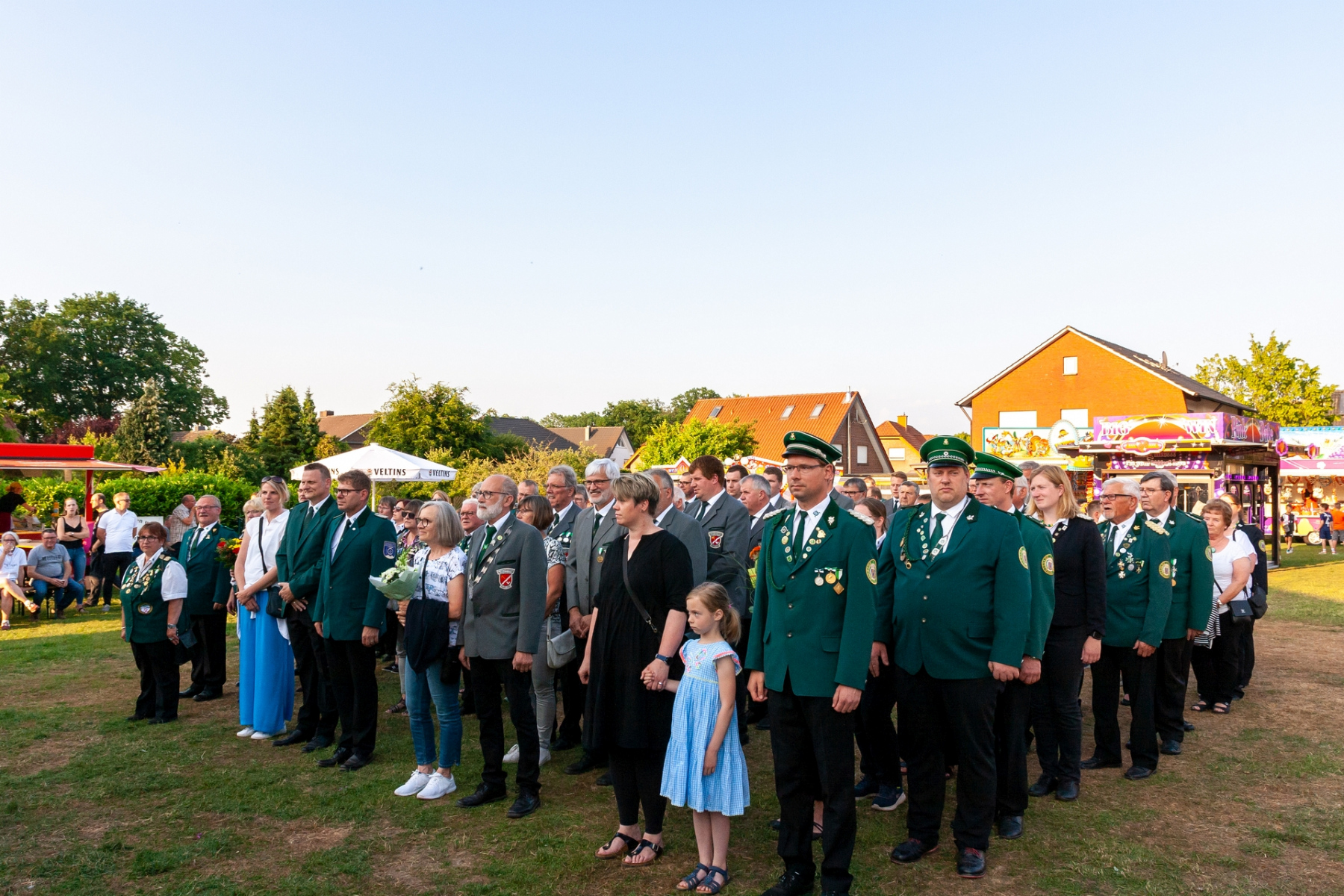 Horst Kröner begrüßte die Könige der angetretenen Vereine sowie die Präsidenten/in und Ehrenpräsidenten. Im Anschluss daran folgten der Königstanz mit allen Königinnen und Könige der Vereine. Nach dem Horrido auf die Vereine und dem Schützenfest ließ Günter Hischemöller die angetretenen Vereine zum gemütlichen Teil wegtreten.