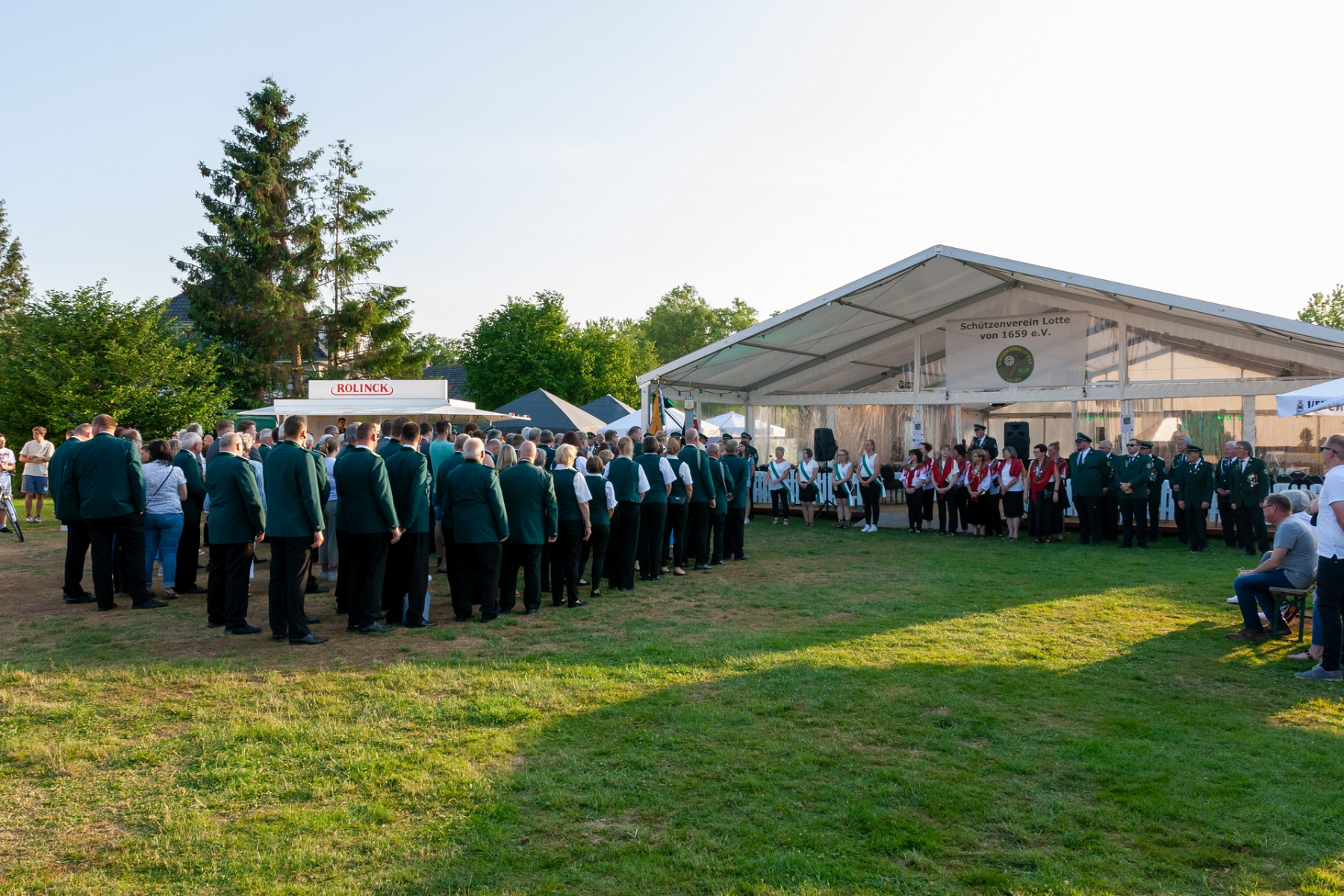 Horst Kröner begrüßte die Könige der angetretenen Vereine sowie die Präsidenten/in und Ehrenpräsidenten. Im Anschluss daran folgten der Königstanz mit allen Königinnen und Könige der Vereine. Nach dem Horrido auf die Vereine und dem Schützenfest ließ Günter Hischemöller die angetretenen Vereine zum gemütlichen Teil wegtreten.
