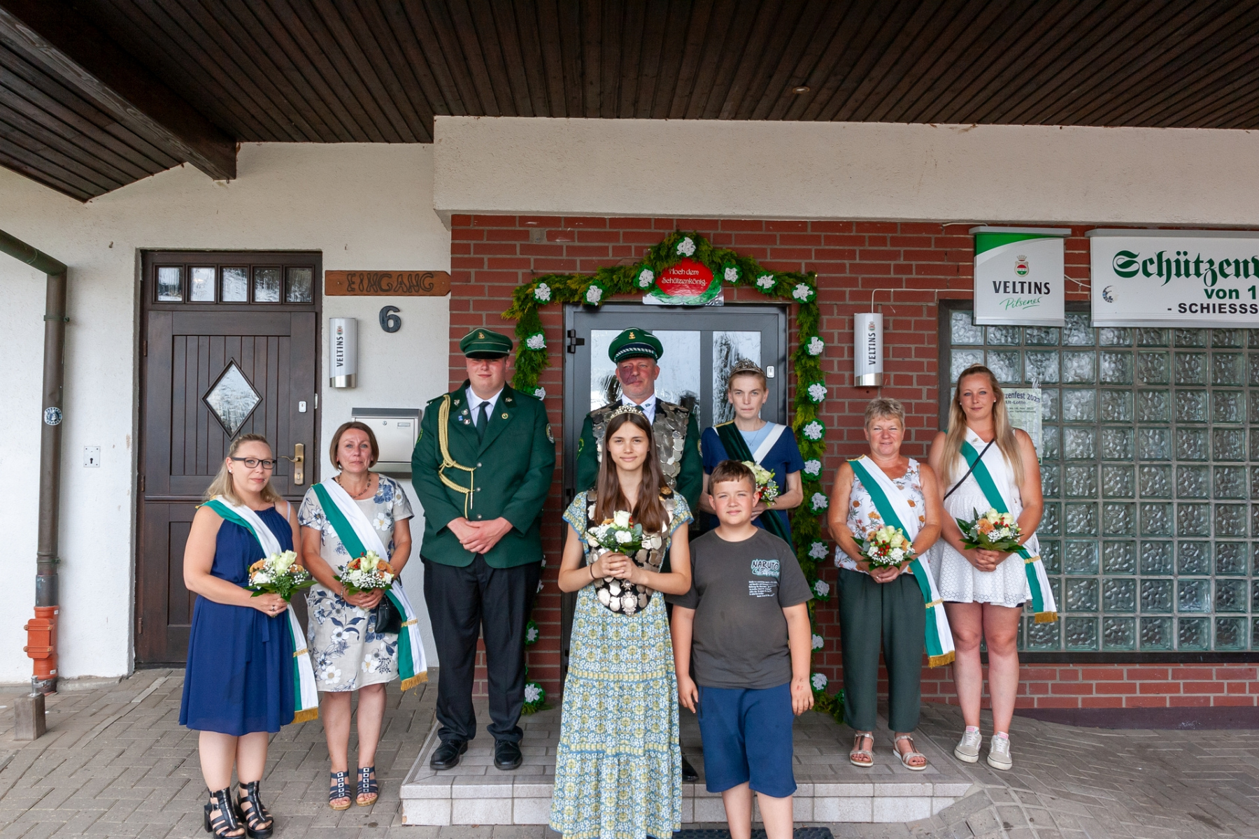 Gegen 14 Uhr trat der Verein auf der Festwiese an, um die neuen Majestäten im Schützenhaus auszuholen.
