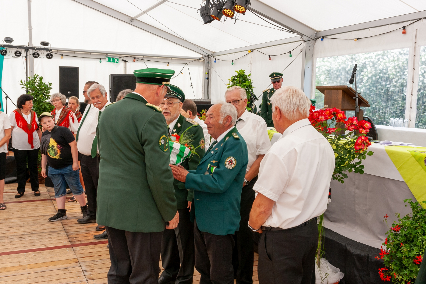 Heidi und Helmut Willms waren vor 25 Jahren das Königspaar des Vereins. Hierfür erhielt sie einen Blumenstrauß. Vor 40 Jahren war Karl-Heinz Bergjohann mit seiner Ehefrau Beate das Königspaar des Vereins. Auch hier überreichte Horst Kröner einen Blumenstrauß.