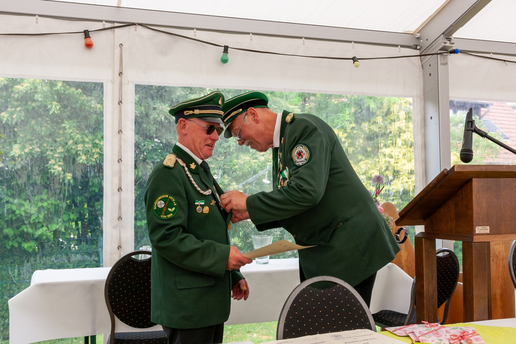 Horst Kröner begrüßte die anwesenden Gäste, den Kreispräsident Oliver Glaser, den Gemeindekönig Dominik Niederbrüning und den Kreiskönig Jürgen Goldmeyer.