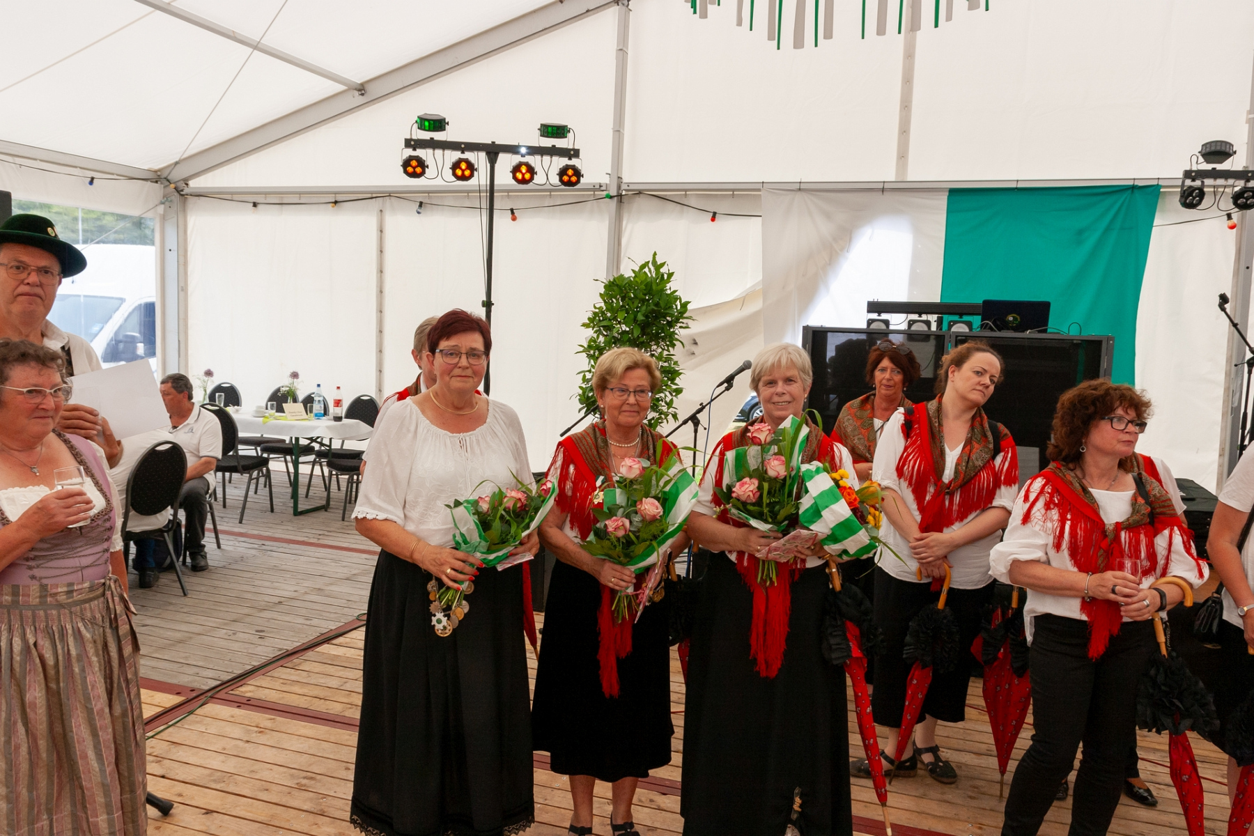 In der Zwischenzeit fand im Festzelt ein kleines Konzert mit dem Original Osnabrücker Windjammer Shanty Chor statt. Trotz der heißen Temperaturen hatten sich doch noch einige Gäste eingefunden, die bei Café und Kuchen dem Shanty Chor lauschten. Die Anwesenden waren von dem Repertoire des Chores begeistert.