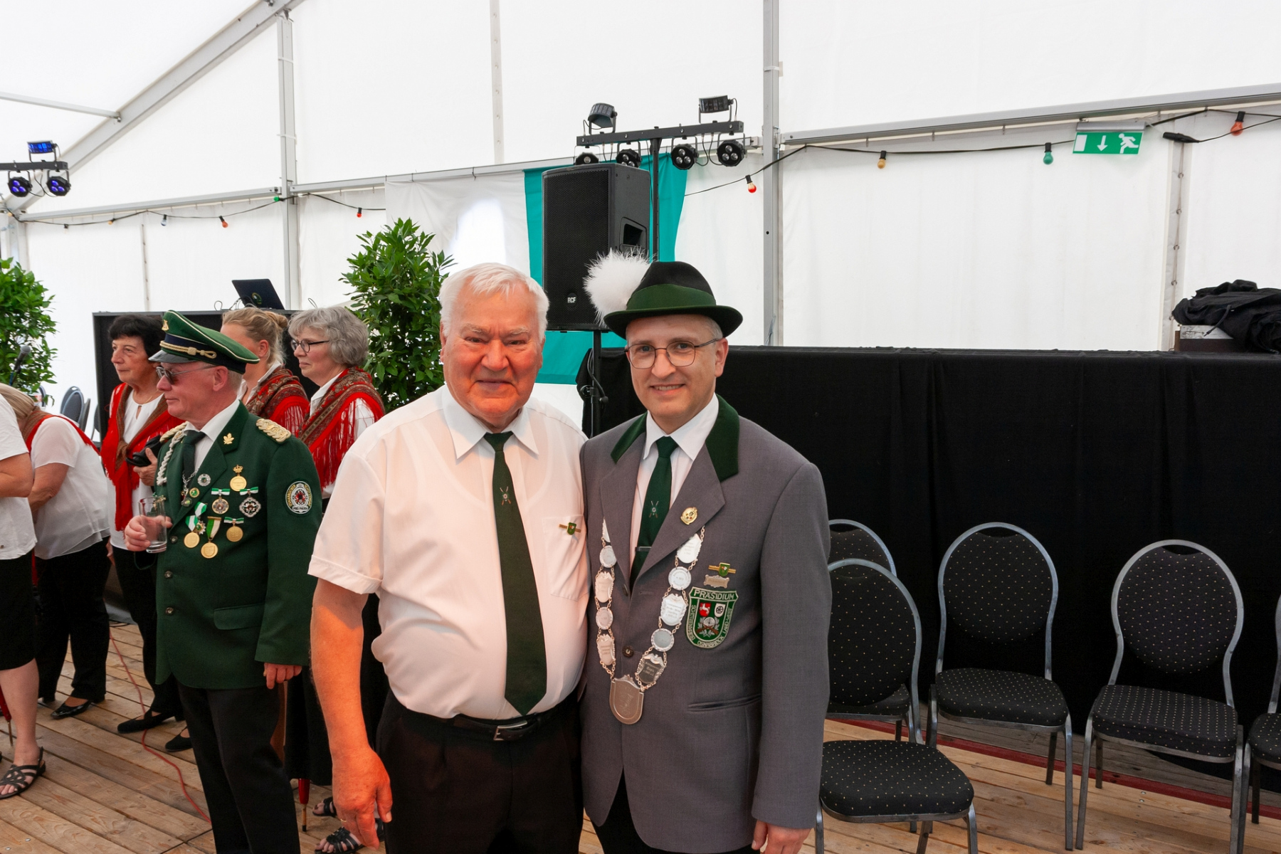 Horst Kröner begrüßte die anwesenden Gäste, den Kreispräsident Oliver Glaser, den Gemeindekönig Dominik Niederbrüning und den Kreiskönig Jürgen Goldmeyer.
