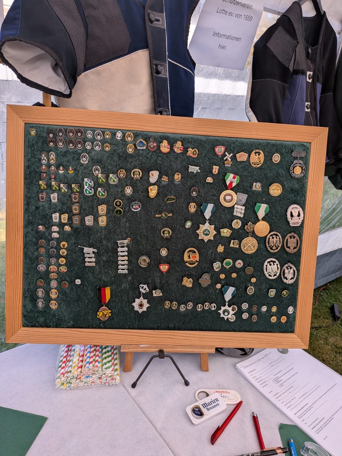 Unser Verein, der Schützenverein Lotte, wurde durch engagierte Sportschützinnen und Sportschützen vertreten. Diese präsentierten zwei Luftgewehre und hatten ihre Schießjacken sowie zahlreiche Medaillen und Orden mitgebracht – stellvertretend für die sportlichen Erfolge, die im Schießsport möglich sind. Unterstützt durch eine informative Präsentation erklärten sie interessierten Besuchern anschaulich, worauf es beim Sportschießen ankommt – von der Konzentration über die Körperhaltung bis hin zur Ausrüstung.